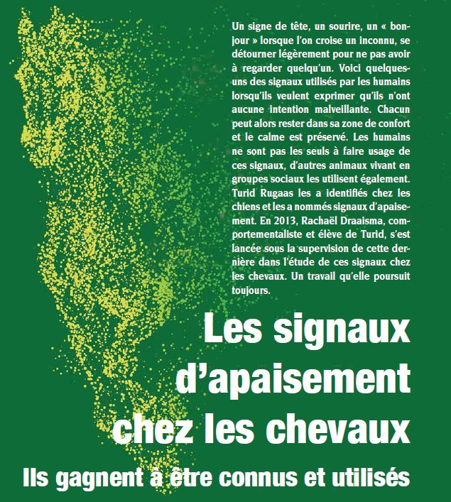 Pour en savoir plus sur les signaux d'apaisement chez les chevaux, voici un article du magazine Planète Cheval au Naturel & Equitation Durable ® :